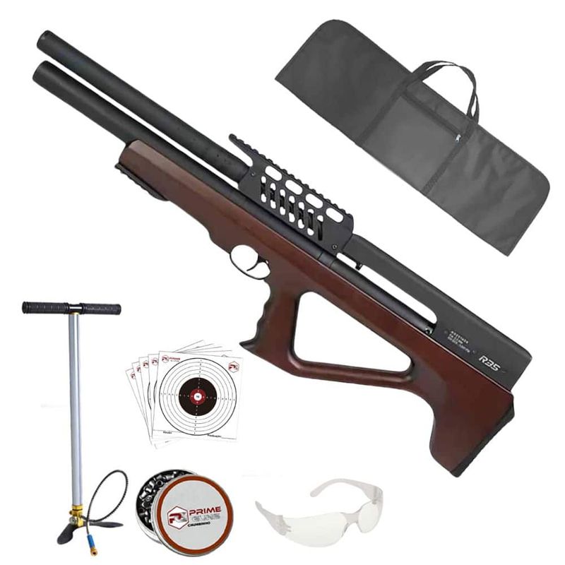 A PCP R35 Bullpup Madeira apresenta um design Bullpup, permitindo um tamanho reduzido sem comprometer o desempenho. Sua coronha em madeira maciça de lei proporciona um acabamento premium, além de garantir resistência e durabilidade. A ergonomia dessa carabina favorece a mobilidade do atirador, tornando-a perfeita para diferentes ambientes de tiro.