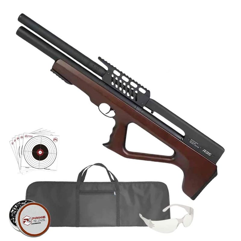A PCP R35 Bullpup Madeira apresenta um design Bullpup, permitindo um tamanho reduzido sem comprometer o desempenho. Sua coronha em madeira maciça de lei proporciona um acabamento premium, além de garantir resistência e durabilidade. A ergonomia dessa carabina favorece a mobilidade do atirador, tornando-a perfeita para diferentes ambientes de tiro.