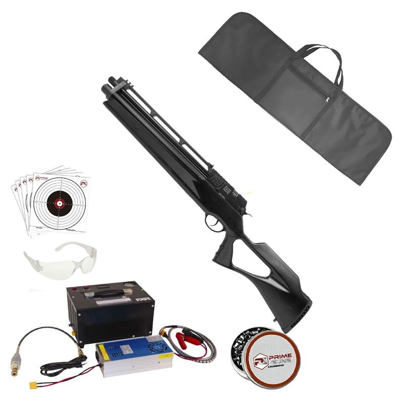 + Compressor PCP + Capa Reforçada + 1 Lata de Chumbinho + Óculos de Segurança + Alvos