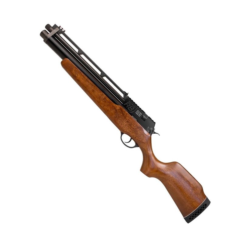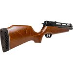 Sua coronha em madeira nobre confere um visual moderno, robusto e sofisticado, enquanto o cano raiado e oxidado com revestimento em fibra de carbono garante alta precisão nos disparos. O magazine rotativo com capacidade para 8 chumbinhos calibre 5.5mm (.22) permite maior praticidade em séries de disparos.