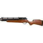 Sua coronha em madeira nobre confere um visual moderno, robusto e sofisticado, enquanto o cano raiado e oxidado com revestimento em fibra de carbono garante alta precisão nos disparos. O magazine rotativo com capacidade para 8 chumbinhos calibre 5.5mm (.22) permite maior praticidade em séries de disparos.