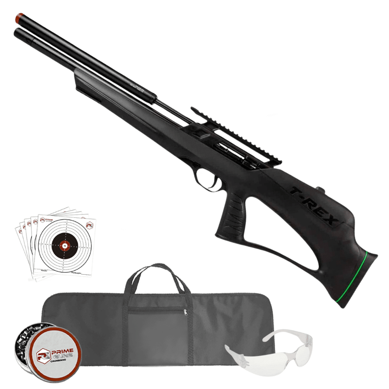 A PCP Rossi T-Rex 6.35mm BullPup se destaca pela potência de 47 joules, garantindo impactos significativos e excelente precisão. Sua velocidade máxima de 885 FPS (270 m/s), utilizando chumbinhos de 1,20g (18,51 grains), faz dela uma opção eficiente para diversas modalidades de tiro.