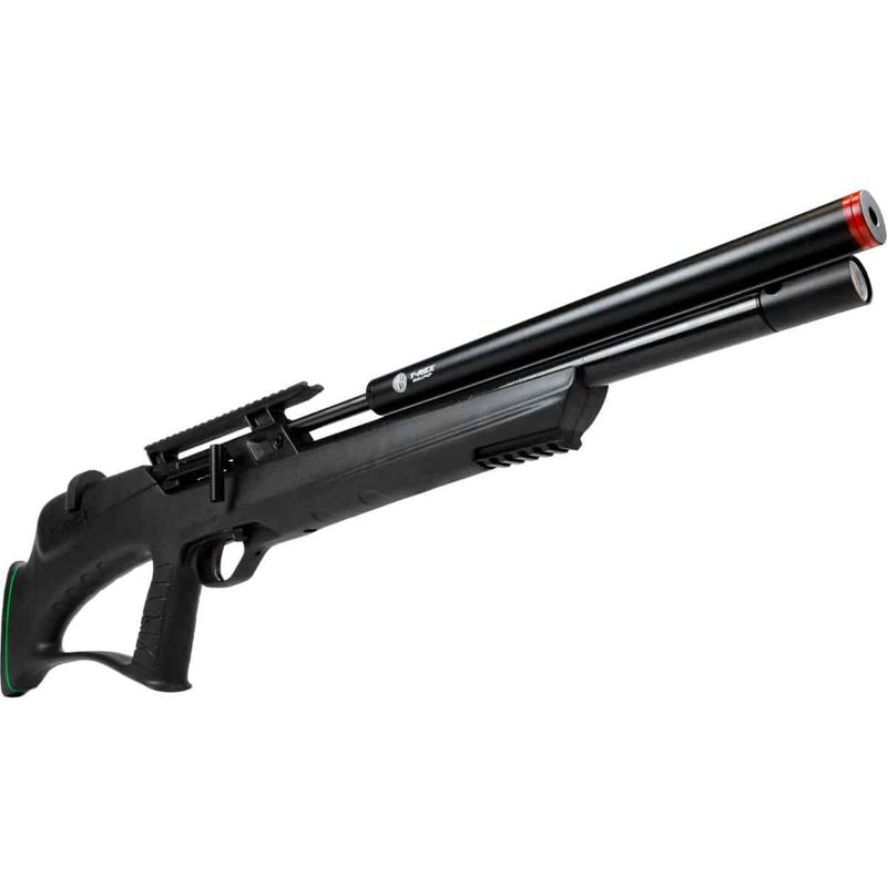 Possui um reservatório de ar com volume de 150cc, proporcionando uma autonomia de até 60 disparos, ideal para longas sessões de tiro. O sistema opera com pressão máxima de 250 BAR (3625 PSI) e mínima de 75 BAR (1088 PSI), garantindo estabilidade e desempenho contínuo.