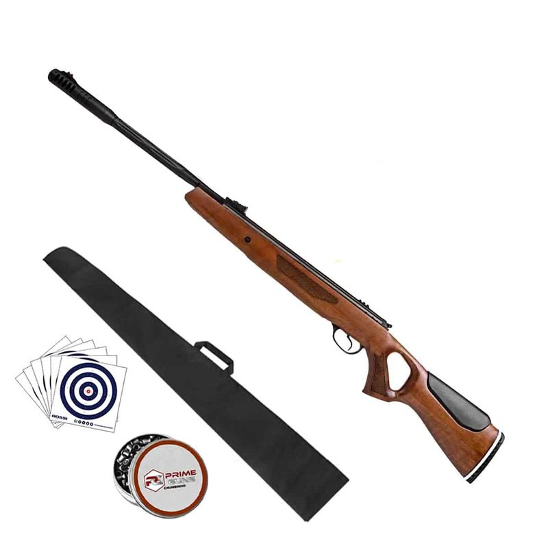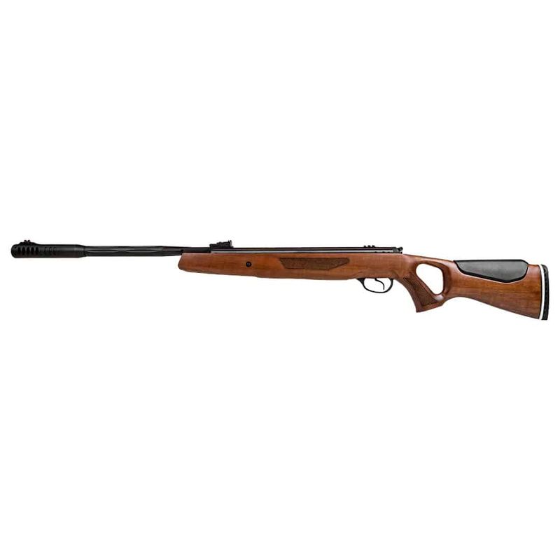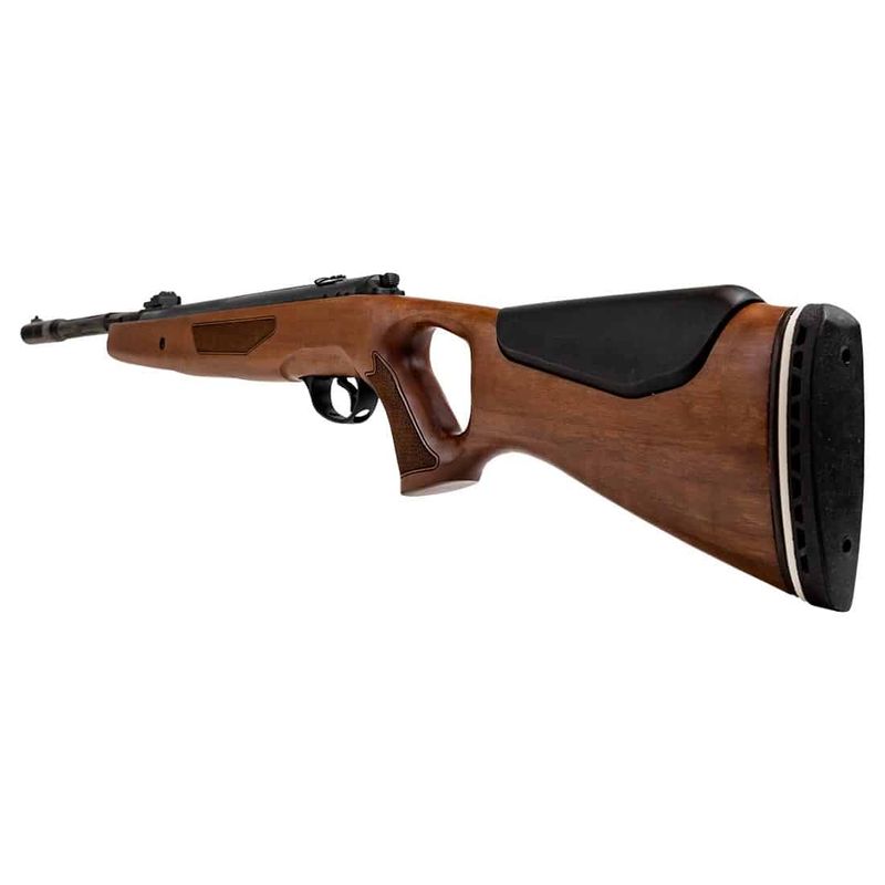 Com coronha de madeira recartilhada, a Hatsan 65 5,5mm possui uma abertura na coronha que facilita no basculamento do cano e a deixa com um visual muito mais tático e confortável.