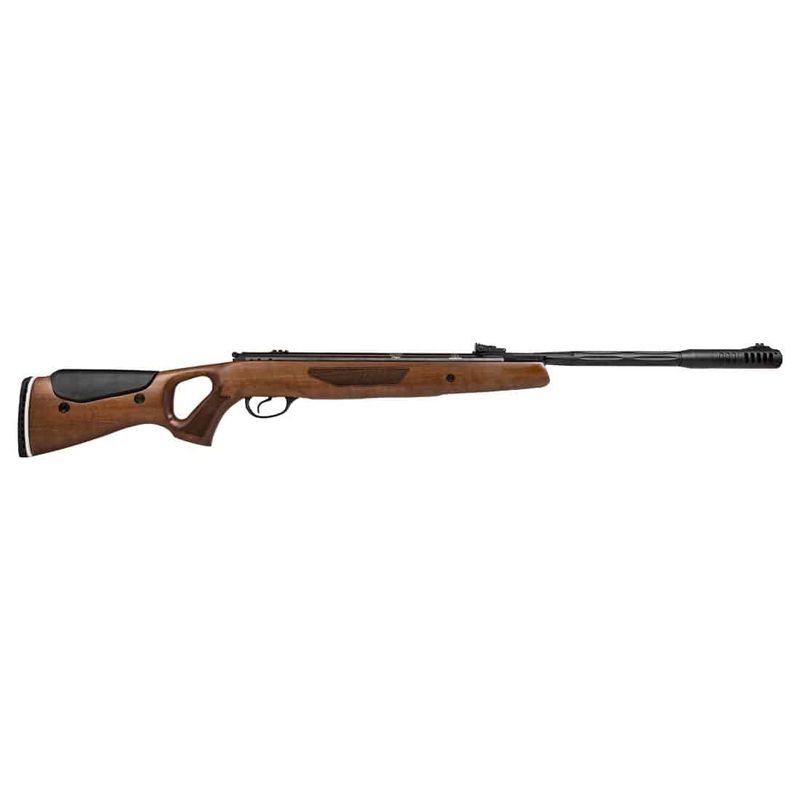 Com coronha de madeira recartilhada, a Hatsan 65 5,5mm possui uma abertura na coronha que facilita no basculamento do cano e a deixa com um visual muito mais tático e confortável.