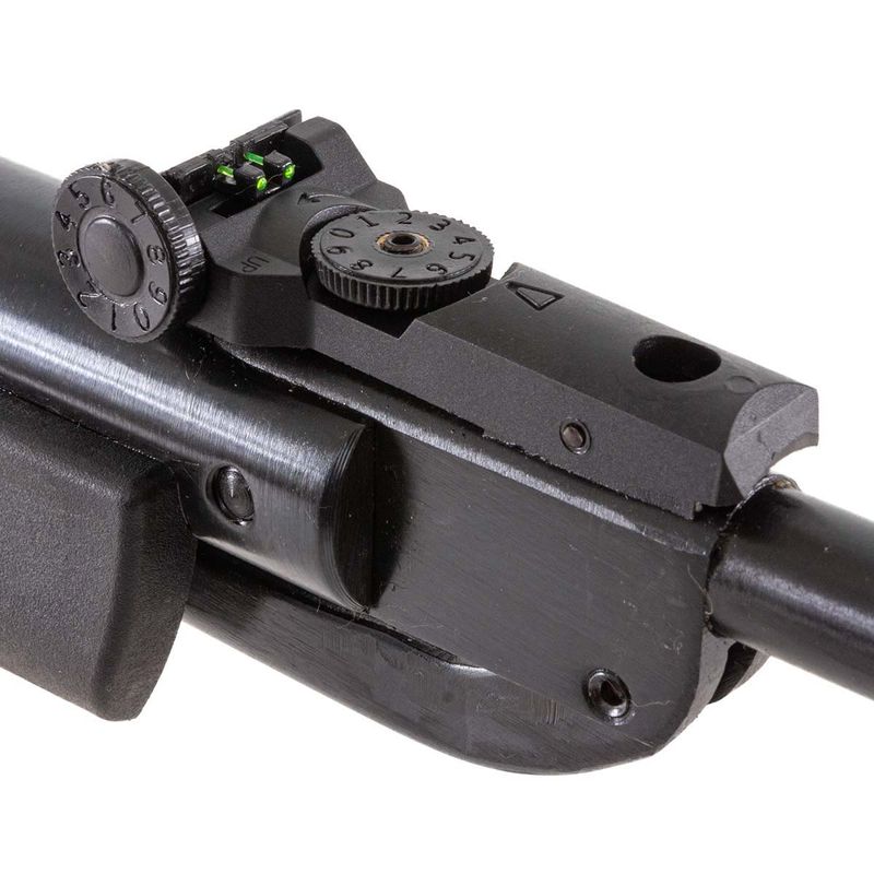 Na Carabina de Pressão QGK 14 5,5mm .22 tanto a alça quanto a massa de mira são em fibra óptica. O que confere ao atirador uma melhor visualização e consequente precisão ao disparo. Alça de mira regulável e massa de mira fixa. Assim a massa de mira tem túnel de proteção fixo para melhor visualização do alvo e ter maior velocidade na visada do alvo.