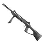 A carabina de ar dispara esferas de aço redondas de calibre 4,5 mm BB. A cápsula de 12g de CO2 necessária para o acionamento pode ser facilmente acomodada no punho do rifle.
