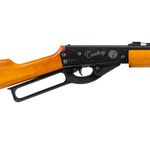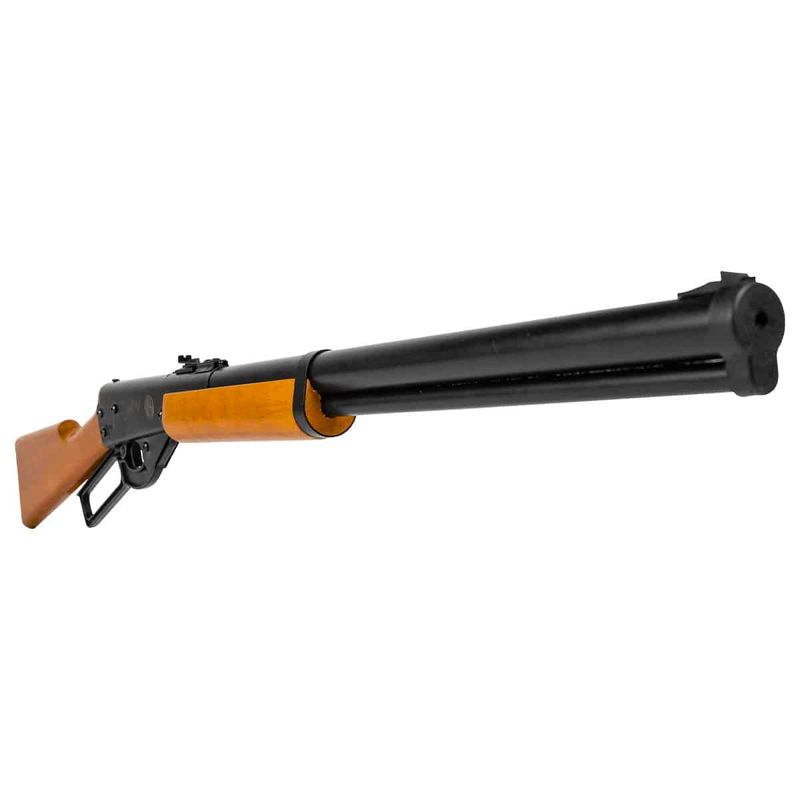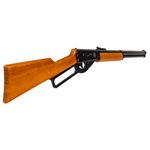 A coronha feita em madeira dá um aspecto muito mais real e bonito para essa carabina. A Cowboy ainda possui a alavanca em metal e alça de mira ajustável.