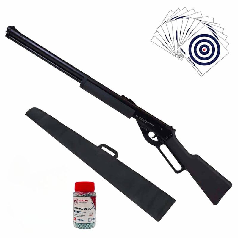*Calibre: 4,5mm Esfera de Aço *Munições: esferas de aço redondas no calibre 4,5mm BB *Sistema: braçadeira de alavanca - pressão da mola *Capacidade do magazine: até 1000 rodadas *Visão traseira e visão frontal (visão traseira ajustável) *Acabamento: metal e polímero *Comprimento: cerca de 90cm *Peso: 1120g *Velocidade: 100m/s - 328fps *Energia: 1,7J *Marca: Rossi *Trilho: Não tem