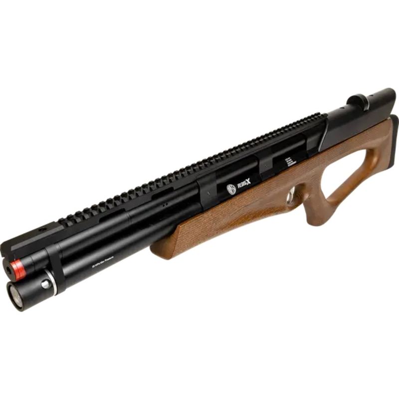 A Rossi R35-X Wood Bullpup 6,35mm é uma carabina PCP semiautomática, equipada com válvula reguladora de fábrica e projetada para entregar potência, estabilidade e repetibilidade de disparo.