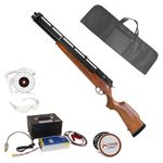 A Carabina Rossi R8 6.35mm .25 PCP Madeira Standard + Compressor dispara no modo Semi Automática com velocidade de 855fps - 261m/s e energia de 102 Joules Ver mais