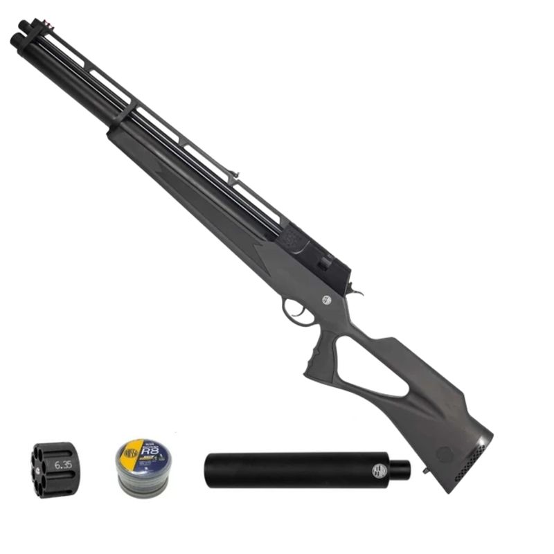 A carabina Rossi R8 BLK é fabricada no calibre 5,5mm .22 e une o que tem de mais qualidade e durabilidade numa carabina de PCP.