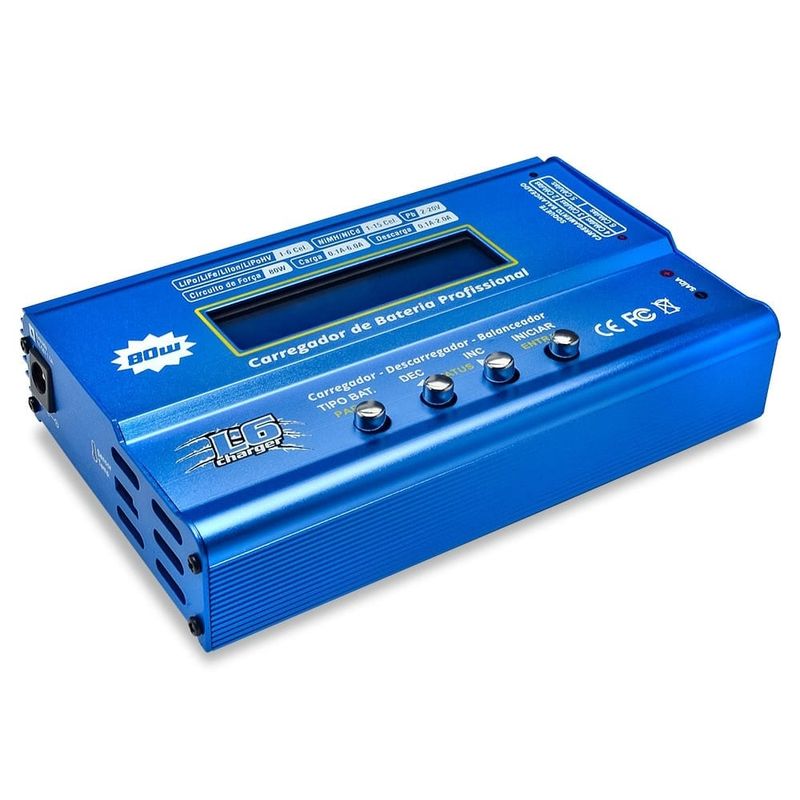 O Carregador e Balanceador para Baterias LiPo Leão L6 é muito avançado e capaz de carregar e balancear baterias Lion, Lipo, LiFe (A123), NiCd e NiMH, de 1s até 6s.