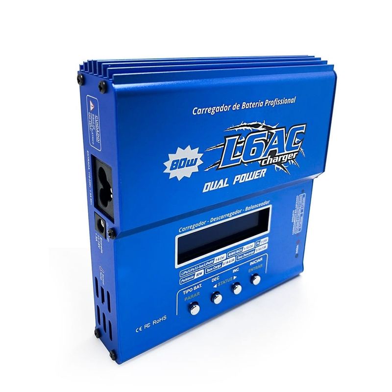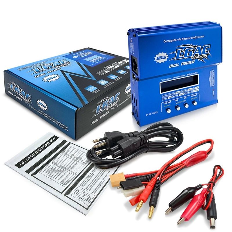 O Carregador e Balanceador para Baterias LiPo Leão L6AC é muito avançado e capaz de carregar e balancear baterias Lion, Lipo, LiFe (A123), NiCd e NiMH, de 1s até 6s.
