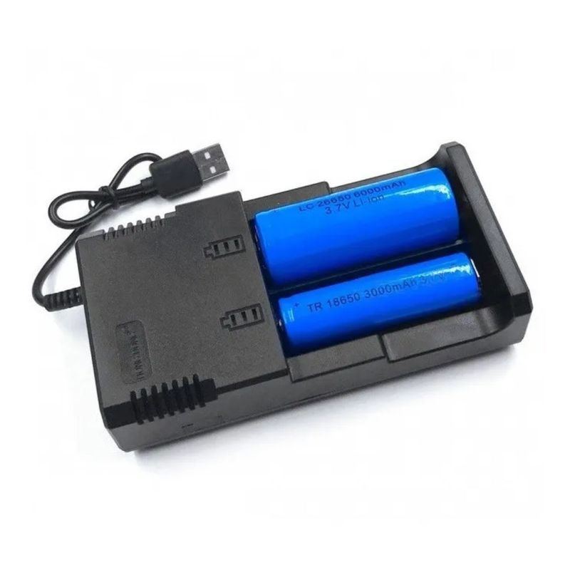 Carregador Duplo com Visor de Carga – Bivolt (14500, 18650 e 26650)