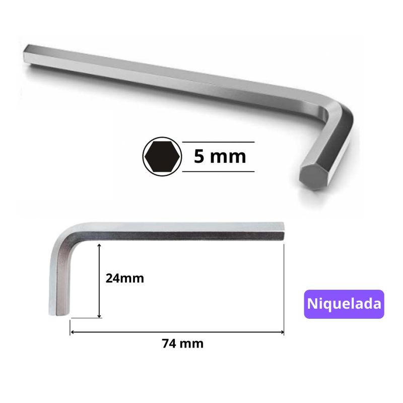 Chave Allen "L" Curta 5mm Niquelada
