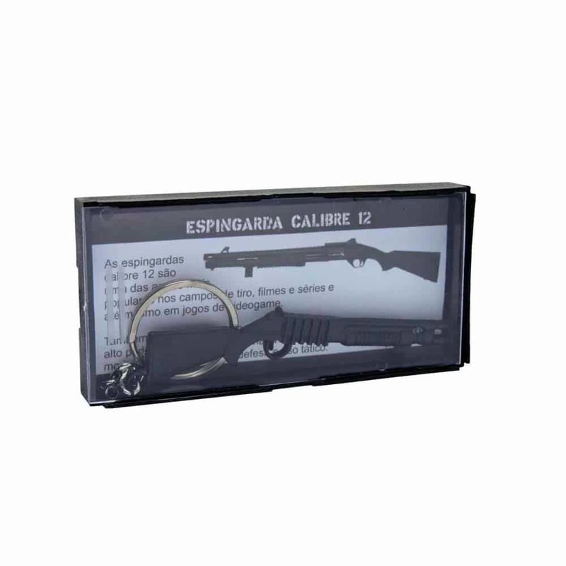 O chaveiro tem formato de uma shotgun, é fabricado em zamac, uma liga de alumínio resistente. Aproveite e adquira o seu Espingarda Calibre .12 e se surpreenda.