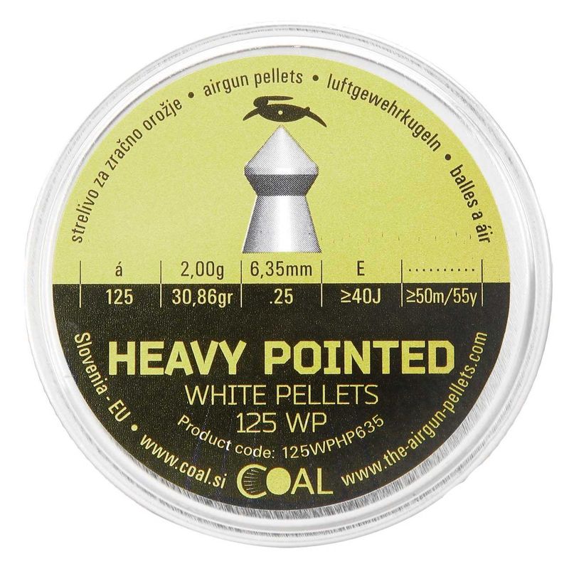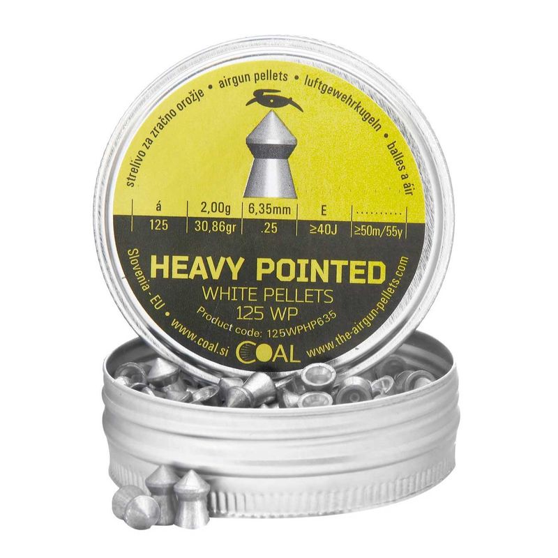 Chumbinho 6,35mm .25 Coal Heavy Pointed para carabinas PCP 6,35 calibre .25 são fabricados na Eslovenia e são o mais indicado para armas potentes e com mais de 40 joules
