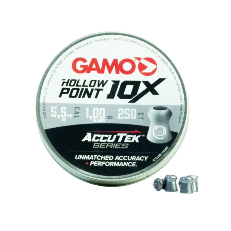 Chumbinho Gamo Hollow Point 10x Accu Tek Series 250 unidades — 5,5 mm Ref: GAM00152