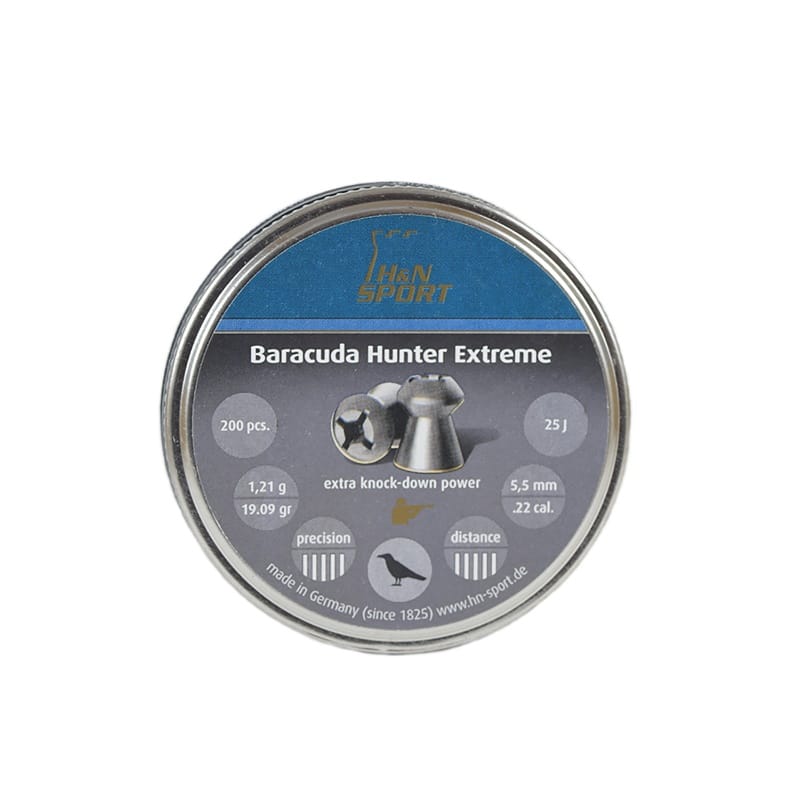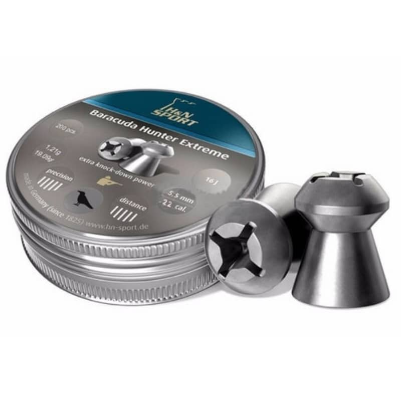 O Chumbinho H&N Baracuda Hunter Extreme 5,5mm .22 200unpossui peso médio e são fabricados pela marca alemã H&N Sport no calibre 5,5mm (.22) para distâncias médias e uso misto, como alvos de papel e caça.
