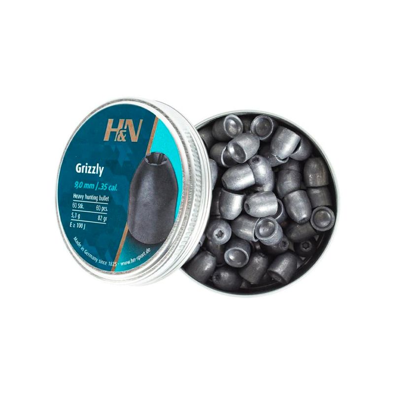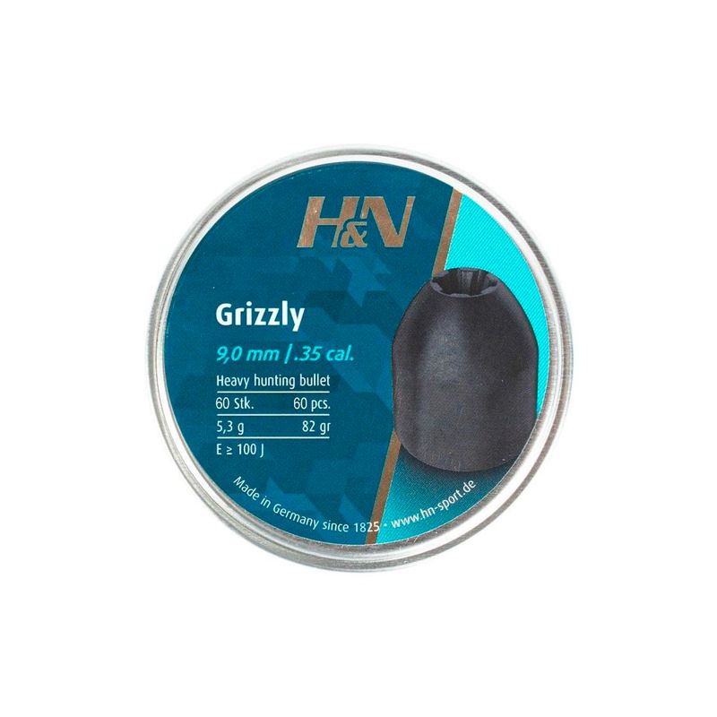 O Chumbinho H&N Grizzly Premium 9mm .35 possui peso massivo e são fabricados pela marca alemã H&N Sport no calibre 9mm (.35) para distâncias curta, médias e longas e de uso misto, como alvos de papel e até mesmo caça, por possuir um efeito impressionante. A embalagem contém 85 unidades, suficientes para o aproveitamento da sua prática de tiro.