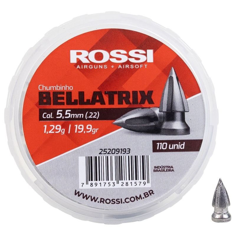 Chumbo Rossi Bellatrix 5.5mm .22 Pontiagudo – 110 Unidades