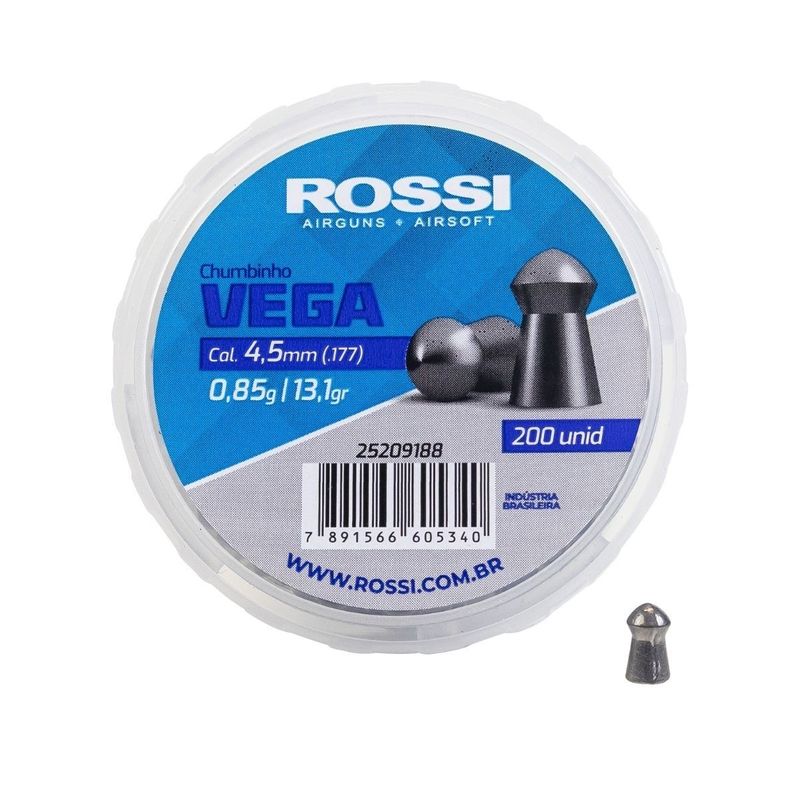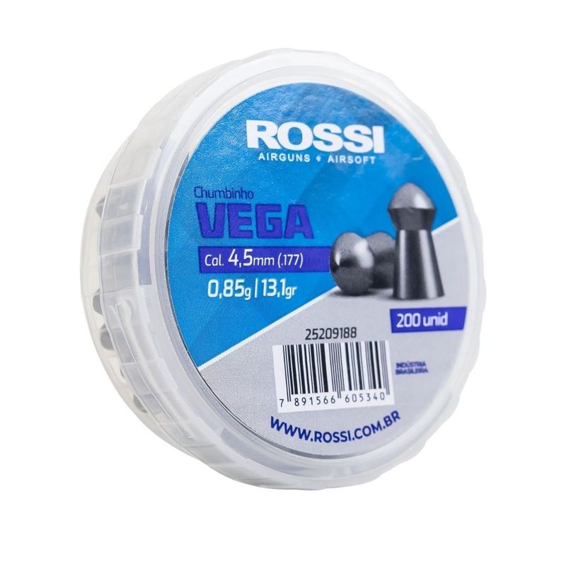 Chumbo Rossi Vega 4.5mm .177 Ponta Redonda – 200 Unidades
