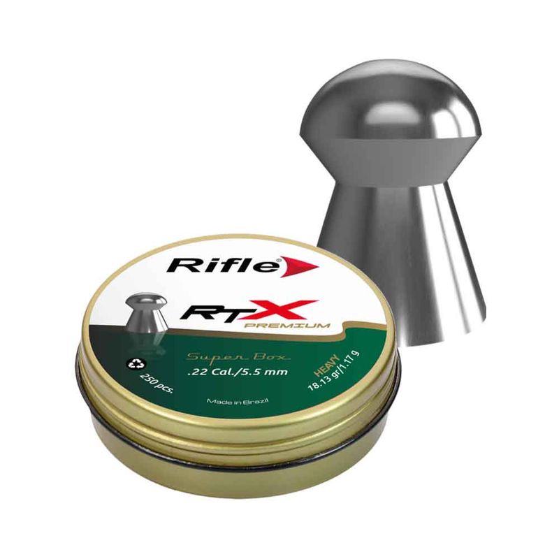 Um chumbinho em formato diabolô, o Rifle RTX possui 3 variações de peso, sendo o Ligth (leve) o Medium e o Heavy (pesado), prometendo o máximo de desempenho e precisão para tiro esportivo.
