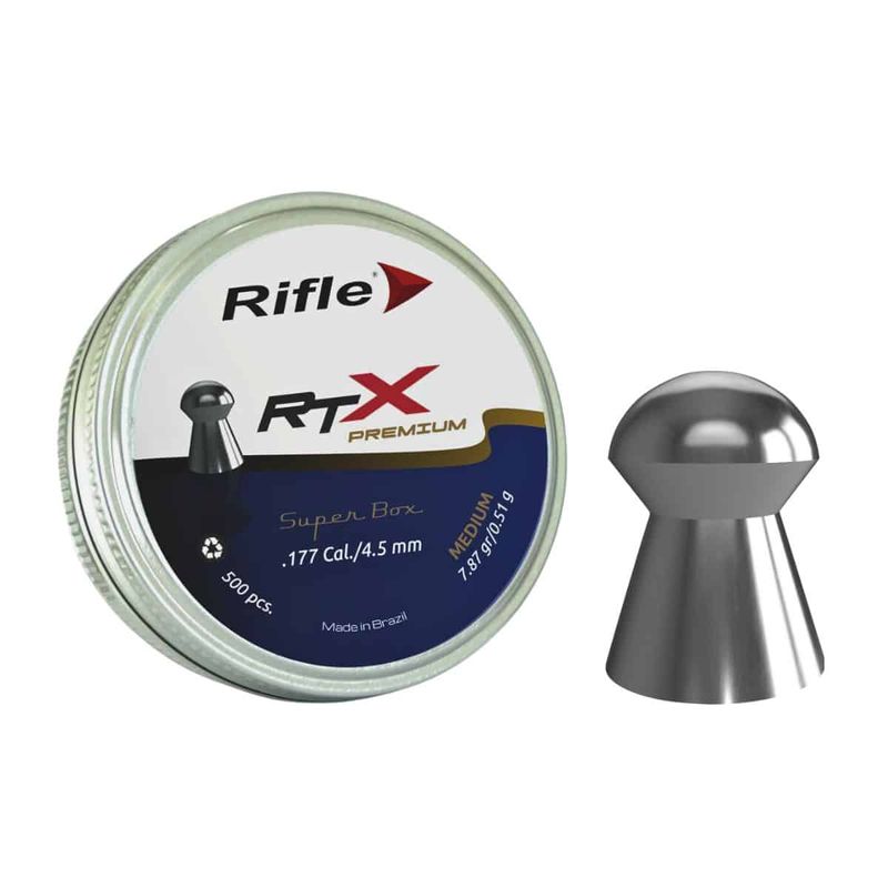 Um chumbinho em formato diabolô, o Rifle RTX possui 3 variações de peso, sendo o Ligth (leve) o Medium e o Heavy (pesado), prometendo o máximo de desempenho e precisão para tiro esportivo.