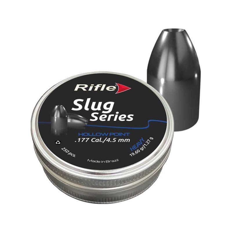 Os Chumbinhos Slug 4,5mm Hevy da Rifle Airgun Ammonition vieram para inovar e suprir o mercado de chumbos pesados para carabinas de pressão. Desenvolvidos em diversos calibres e pesos, os slugs da Rifle são oferecidos em calibre 4,5mm, 5,5mm, 6,35mm, 7,62 e 9mm, tendo alguns modelos e calibres ainda pendente de comercialização.