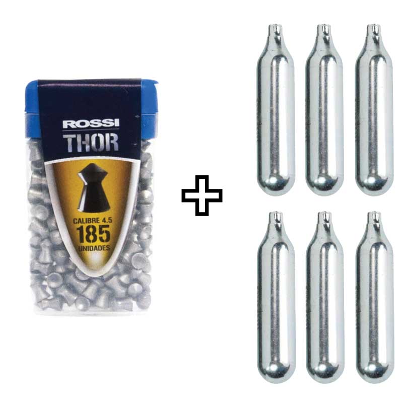 Chumbinho Thor 4,5mm 185 unidades + 6 Cilindros de Co2 12g