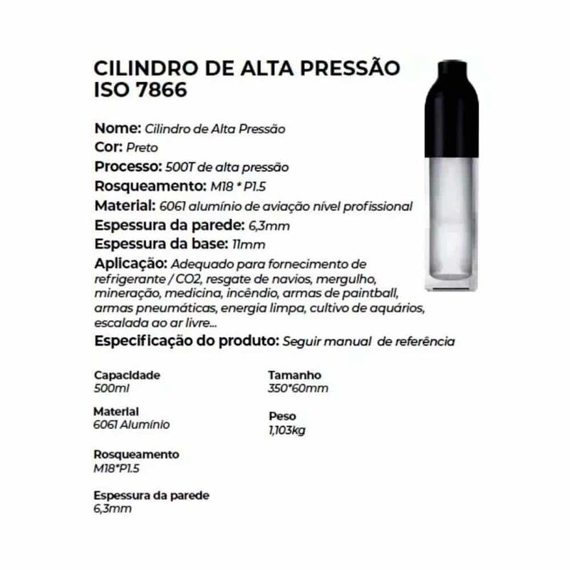 AcessóriosCilindro ScubaCilindro de Ar Carabina PCP 0,5L Alumínio Rossi