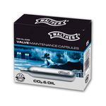 Além do gás CO2, as cápsulas de manutenção da válvula são preenchidas com 0,5 g de um óleo especial que limpa e lubrifica a válvula durante o acionamento e ao mesmo tempo fornece uma película de óleo a todas as partes deslizantes do mecanismo. Usada regularmente, a cápsula de manutenção garante precisão e funcionalidade constantes da arma.