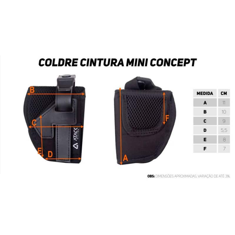 O coldre externo é um acessório para o armazenamento e transporte de armas. O porte de arma na cintura permite um saque rápido e mantém relativo contato visual com a arma a maior parte do tempo, tornando-se assim o modelo de coldre preferido pela maior parte de usuários. O Coldre Mini Concept permite o transporte de armas de menor porte de maneira segura.