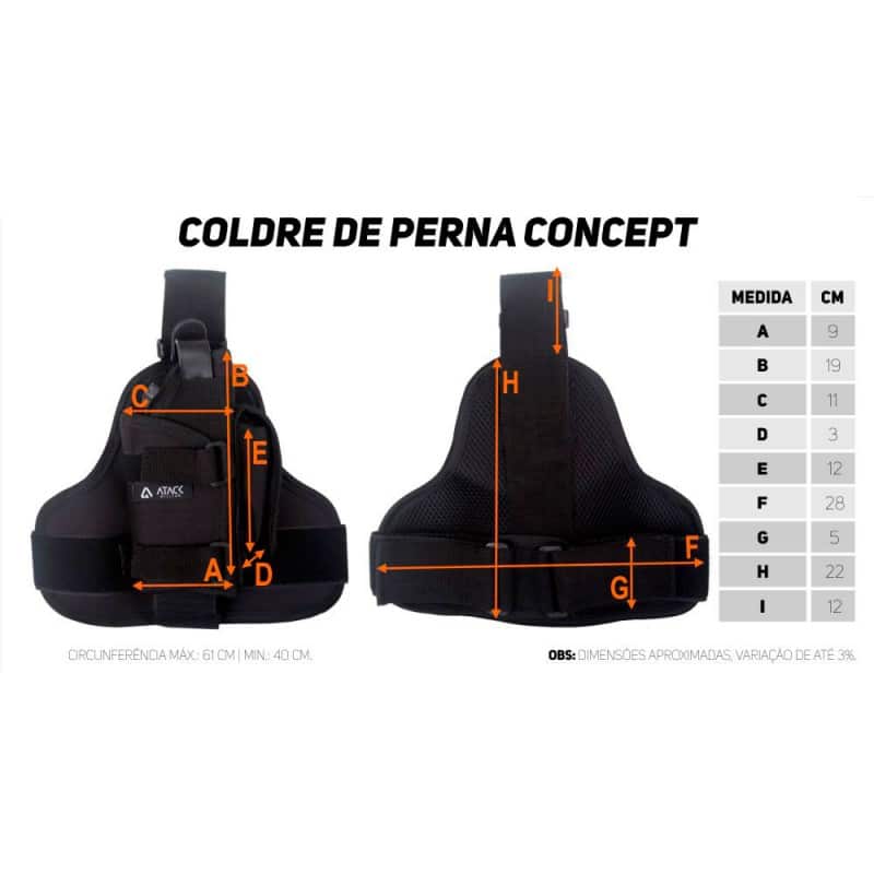 Informações Técnicas Coldre de Perna Concept Ambidestro para Armas Curtas