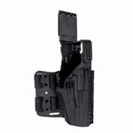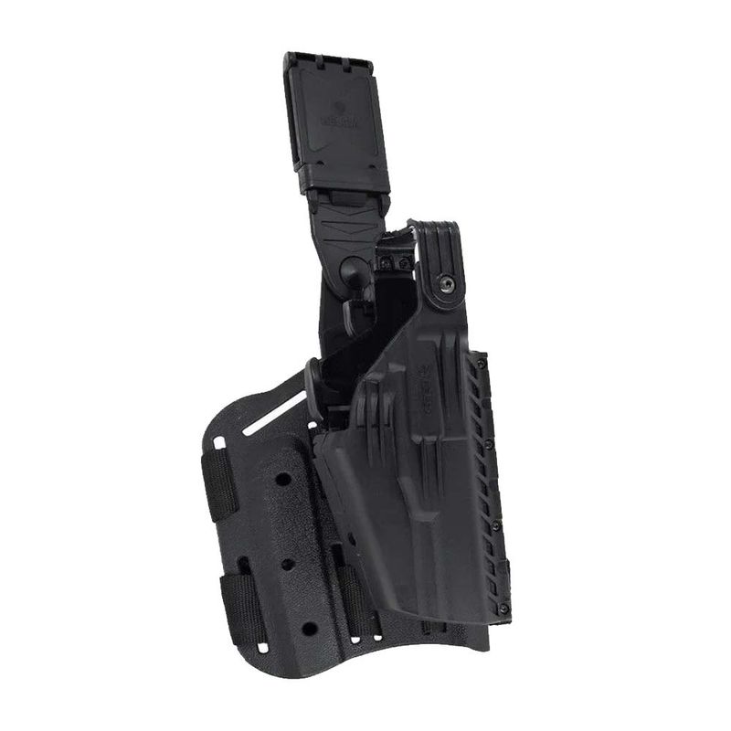 *Novo sistema de travamento duplo, sistema de abertura automática com alça anti-arrebatamento Thumb-Break e trava de saque rápido com semi-automática, proporcionando maior agilidade e segurança no saque; *Sistema de plataforma Belt-Lock Spin, (conjunto formado com a alça fixação ao cinto com sistema rotativo), dispõe de trava para liberação do cinto de guarnição 7 níveis diferentes de regulagem; *Fabricado em polímero de alta resistência; *Plataforma é totalmente confortável, flexível e resistente, projetada para seguir a anatomia da perna; *Possui fitas emborrachadas, altamente aderentes, evitando que a plataforma altere sua posição; *Catraca rotativa que possibilita a rotação do coldre, para ajuste do ângulo e maior conforto no manuseio do equipamento; *Possibilidade também de fixação do equipamento em outras bases compatíveis com catraca; *Revestimento interno em flocagem, proporciona maior proteção, diminui o atrito entre arma e equipamento, evitando o desgaste de ambos; *Adaptador para ajuste da trava, compatibilidade com outros tamanhos de guarda-mato; *Ajuste personalizável conforme o corpo da arma; *Compatível com passador de cintura.