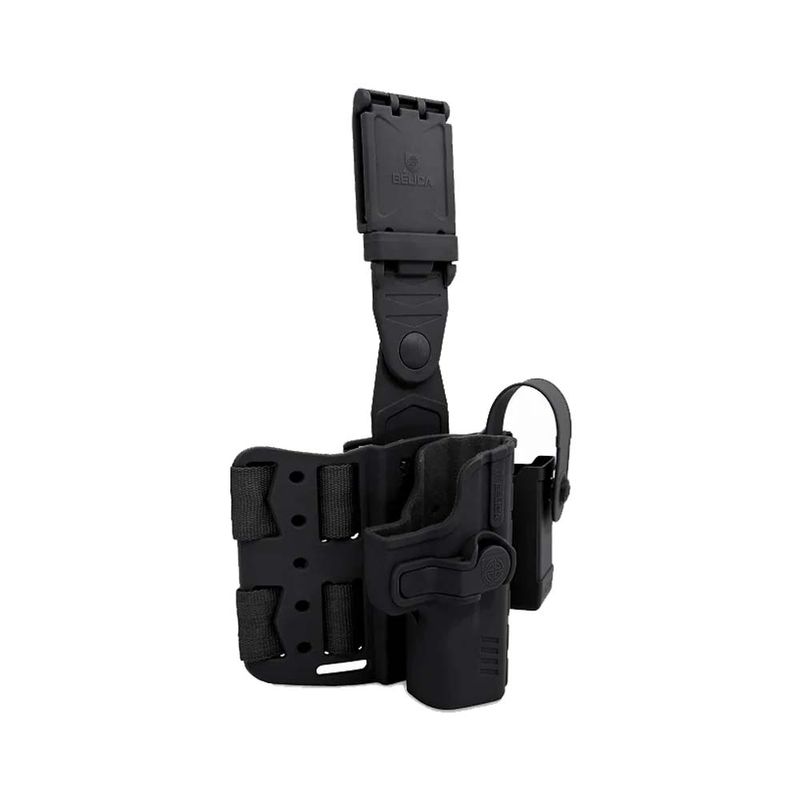 Coldre de Perna Rígido Pro SR2 para Pistolas da Bélica Militar é fabricado em polímero de alta densidade, acompanhado do adaptador de cintura com passador de cinto. Além de seu externo de alta qualidade, possui revestimento interno em camurça, o que proporciona maior proteção e evita o desgaste do armamento.