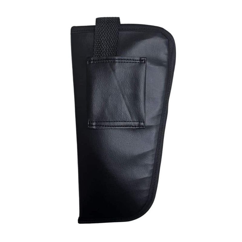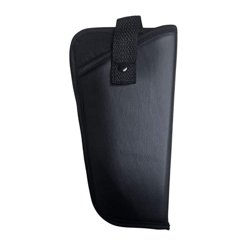 O coldre universal possui 3 camadas, sendo a parte interna em Neoprene, que não arranha ou danifica o revólver, forro interno de proteção e acabamento em couro sintético preto.