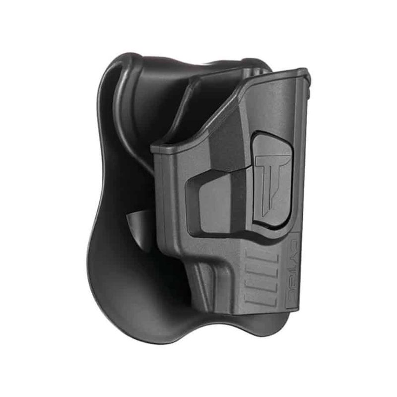 Com um ótimo mecanismo de segurança o Coldre Cytac possui botão de liberação pelo dedo indicador e bloqueio rápido que permite a remoção rápida e bloqueio automático quando a arma é coldreada