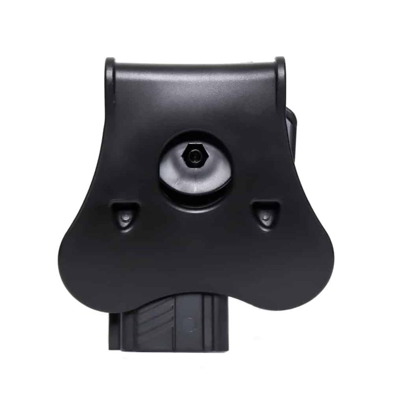 Paddle de silicone macio e confortável que encaixa firmemente o coldre ao cinto ou à sua cintura. Gira 360 graus para regulagem adequada a cada atirador