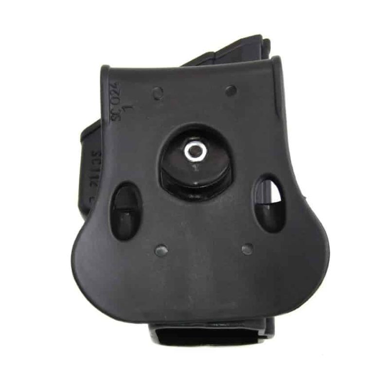 Paddle de silicone macio e confortável que encaixa firmemente o coldre ao cinto ou à sua cintura. Gira 360 graus para regulagem adequada a cada atirador, e possui passador de cinto tático