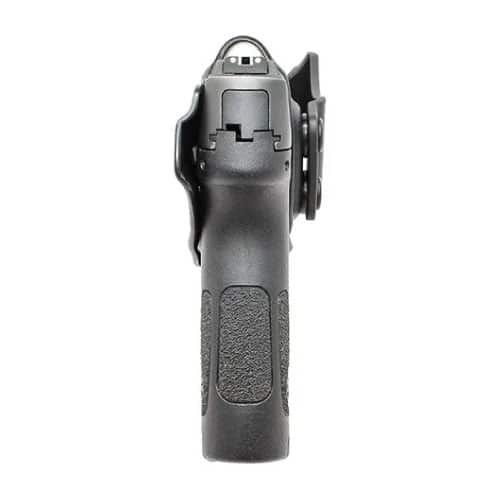 Ao colocar a arma no coldre, emite um som de “clique”, alertando que a pistola está segura e presa no coldre. Sistema de bloqueio automático e saque rápido que oferece alta segurança.
