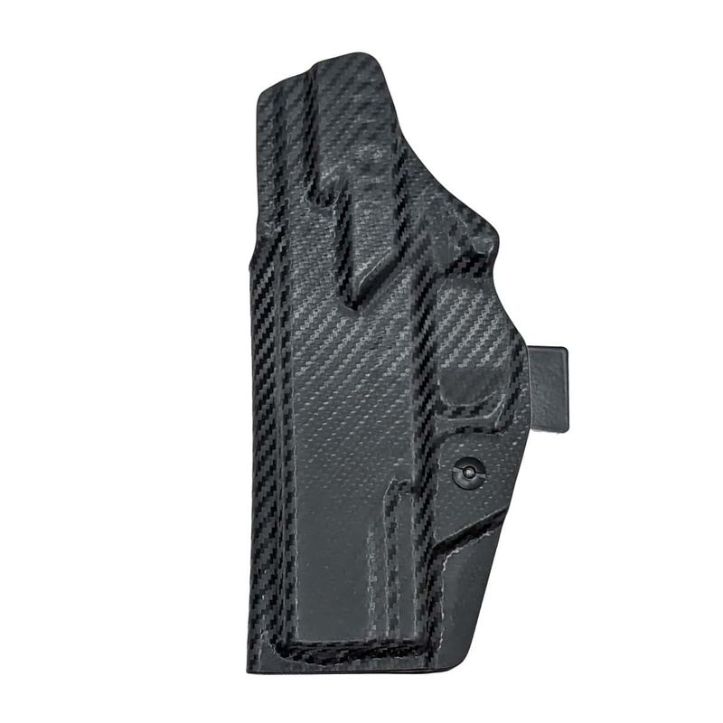 Desenvolvido com materiais de alta qualidade para garantir a segurança, confiabilidade e praticidade do produto, todos seus componentes são importados, desde os parafusos até a matéria prima principal, o kydex. Possui acabamento liso polido nas bordas do coldre.