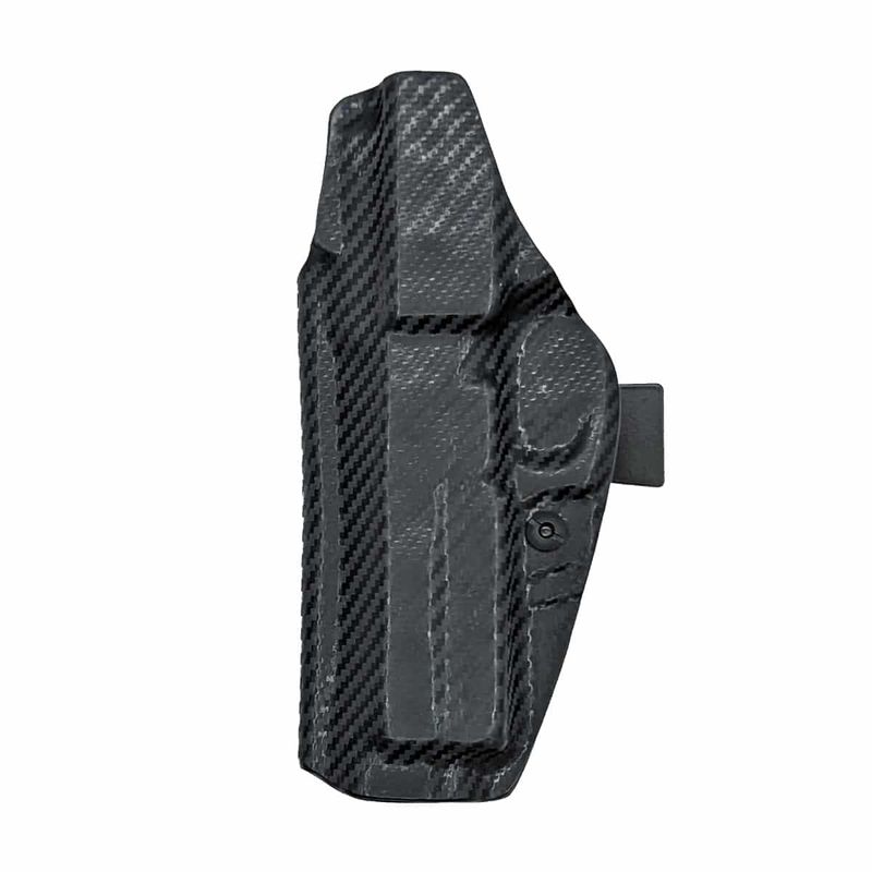 Desenvolvido com materiais de alta qualidade para garantir a segurança, confiabilidade e praticidade do produto, todos seus componentes são importados, desde os parafusos até a matéria prima principal, o kydex. Possui acabamento liso polido nas bordas do coldre.