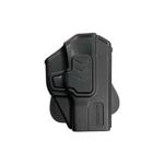 Fabricado em polímero de alta performance, este coldre é extremamente resistente, não inflamável, rígido e seguro, proporcionando uma longa vida útil. Ele inclui uma trava de segurança para garantir que a arma permaneça firmemente presa ao coldre, aumentando a segurança do operador.