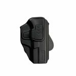 Confeccionado em polímero de alta performance, este coldre é extremamente resistente, não inflamável, rígido e seguro, garantindo um acessório de alta qualidade e longa durabilidade. Ele possui uma trava de segurança para assegurar que a arma fique firmemente presa ao coldre, proporcionando maior segurança.