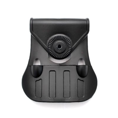 Paddle de silicone macio e confortável que encaixa firmemente o coldre ao cinto ou à sua cintura. Gira 360 graus para regulagem adequada a cada atirador, e possui passador de cinto tático