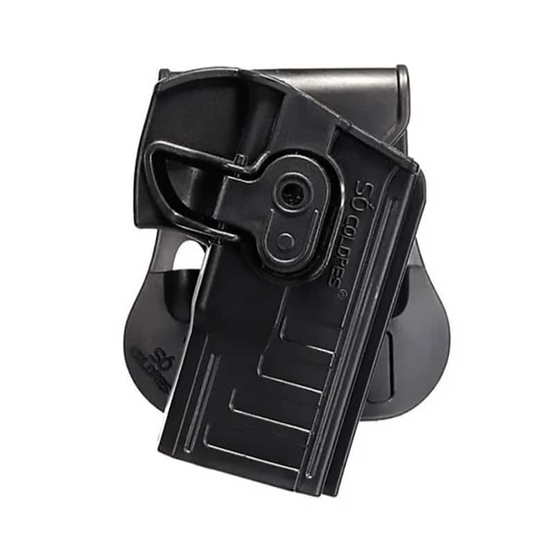 O Coldre da Só Coldres possui saque suave com trava passiva de liberação, assim pode ser ter a pistola acoplada de forma simples.