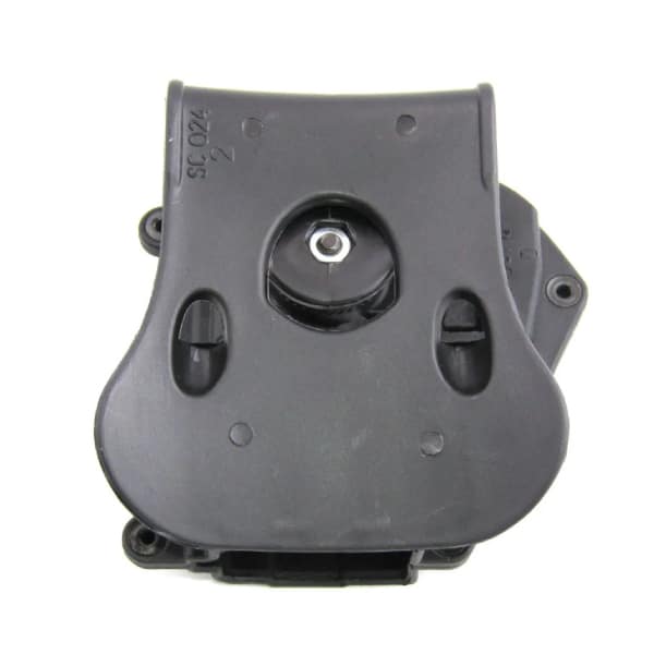 Paddle de silicone macio e confortável que encaixa firmemente o coldre ao cinto ou à sua cintura. Gira 360 graus para regulagem adequada a cada atirador, e possui passador de cinto tático