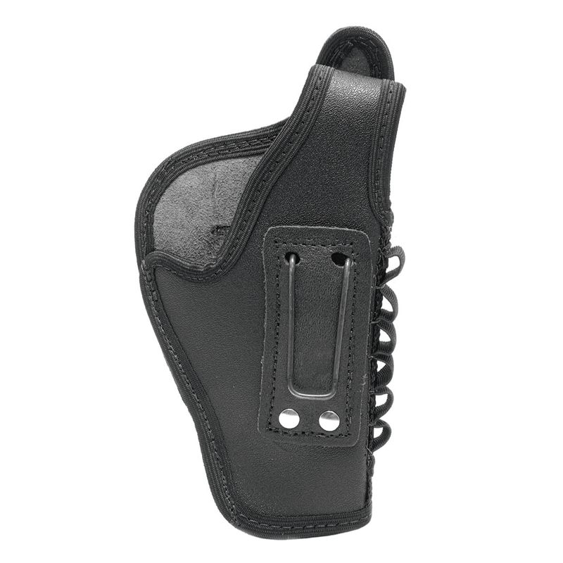 Fabricação em Nylon composta de  clipes, passadores de cinto e botões de pressão, o coldre para revólver é preso ao cinto do atirador, podendo ser utilizado no modo IWB (Inside Waistband- porte por dentro da cintura da calça), como no modo OWB (Outside Waistband- porte por fora da cintura da calça).